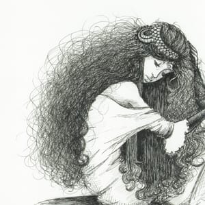 This is also a story with the missing maternal – there's no queen. The main character in Thrushbeard is a princess in her father's kingdom, and she's picky and snide toward all her suitors. Her skills are lacking and she's got to build them. Animus is a tri-fold image in this story: Her minstrel husband is the king of the land in disguise and is (also in disguise) a hussar who smashes the pots she tries to sell in the marketplace.
